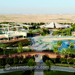 The park also contains an artificial lake of about 2500 square meters, and it also has an air-conditioned covered area and outdoor patios overlooking the lake, waterfalls, and fountains. And a restaurant for families, about two meters above the level of the surrounding green areas.