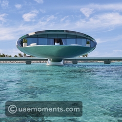 Stand in front of one of the orbs and they seem to disappear into the horizon, shimmering almost like a mirage. The bottom of the villas reflects sea or sand and the roof reflects the sky, constantly changing from sunrise to sunset, becoming part of the environment that surrounds them. Overwater villas are Suspended above the waves, and a mere stone’s throw from colorful coral gardens that surround the resort. Set back over 50 meters from the natural coral reef, the villas’ supporting columns touch only a few square meters of ground, a light touch approach that aligns with the enduring commitment to protect the thriving habitats of the lagoon. “The result is an aerial accommodation pod that almost seems to defy gravity, and suspends the guest directly above and within the beauty of this marine eco-system,” says Killa. “Each overwater villa is like an observation platform for guests to witness the fish, birds and turtles that thrive in this area.”