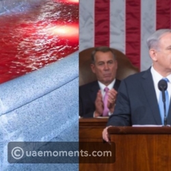 PROTESTORS HAVE DYED FOUNTAINS AROUND THE CAPITOL IN WASHINGTON D.C. RED THE COLOR OF BLOOD DUE TO ISRAELI PM BENJAMIN NETANYAHU’S VISIT