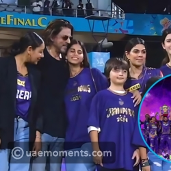 The team's owner Shah Rukh Khan also celebrated the team's win with his family that was present there including his wife Gauri Khan and his children Aryan Khan, Suhana Khan, and Abram Khan.