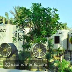 Mist fans, another playground element, help to chill the area around the games. The playground's design is environmentally friendly because it receives some of its power from solar panels that have been installed close by.